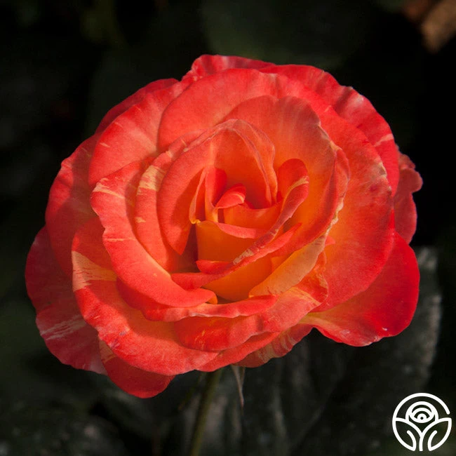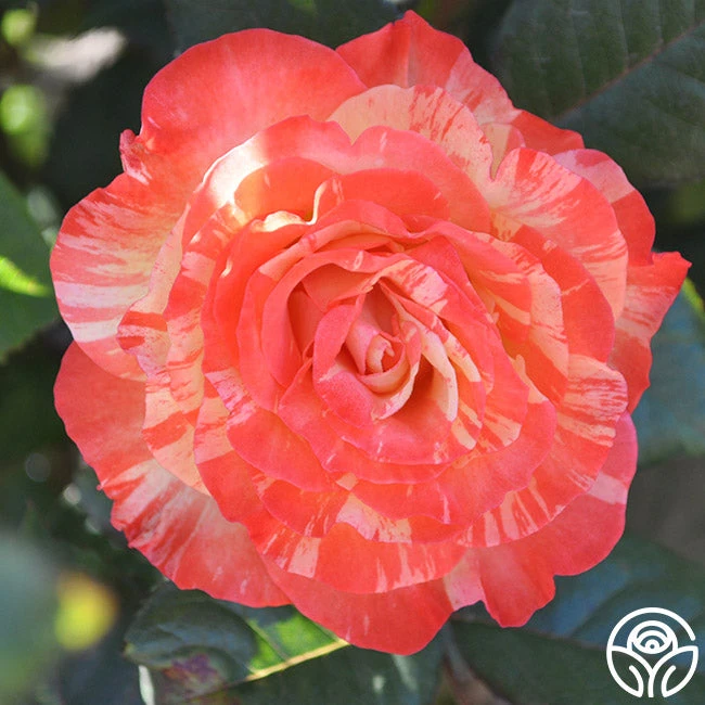Named for the glass artist, Dale Chihuly, this rose produces the most beautiful 3½ – 4” blooms in ever-changing colors of apricot, yellow, orange, and red. Chihuly’s colors are painted, blushed, blended and at times striped with all of these colors. This continually blooming plant has a mild tea fragrance. Expect new growth to be dark red on this Floribunda.