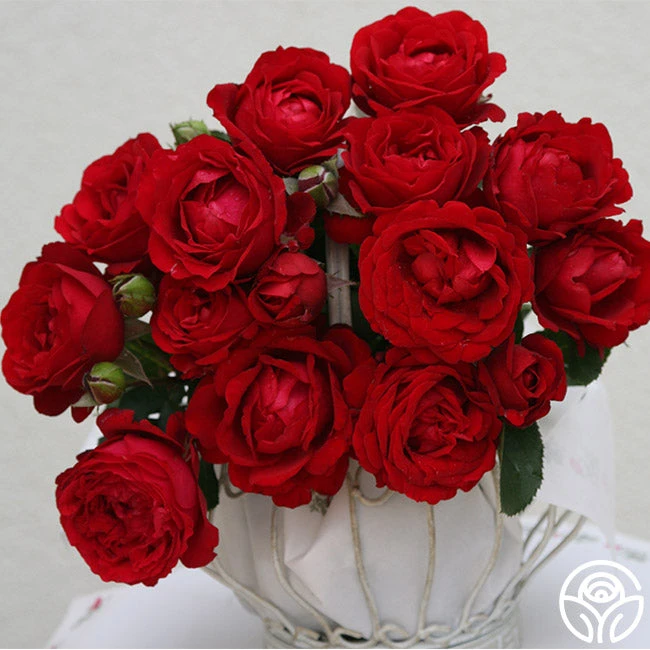 This beautiful, red Hybrid Tea rose with high-centered buds opens into nostalgic flowers with frilled petal edges. Heart Song’s gentle spice fragrance decorates beautiful, medium double blooms of 17-25 petals in repeated flushes throughout the season. We love her abundant, dark green foliage and that she is compact enough for the garden or pots. She makes a great cut flower as well.