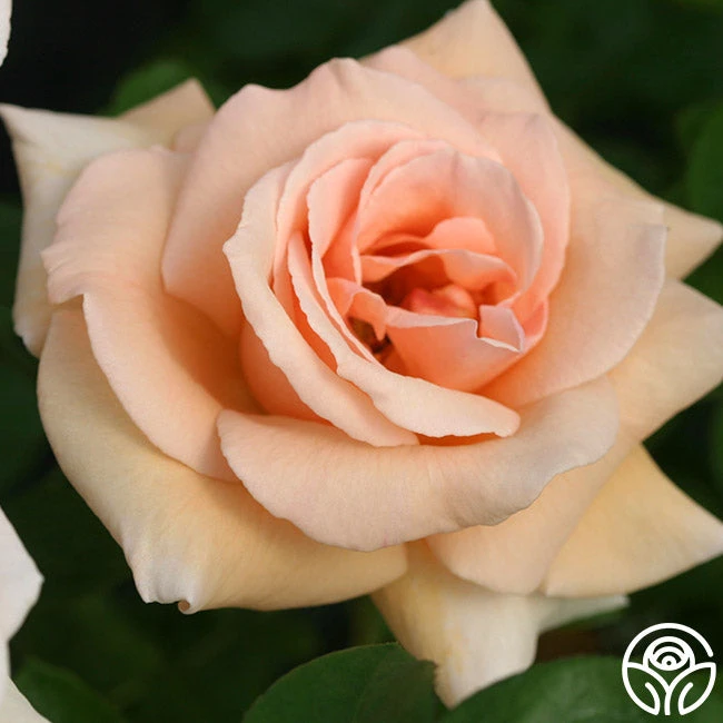 Coming from Peter Beales in the UK, Everest Double Fragrance produces large, fully double, shapely, 4″ blooms with 12-15 petals each. Her flowers are borne in trusses of soft powder-pink , sometimes almost apricot, on a continually blooming plant backed by dark-green, leathery, and heavily veined foliage.
