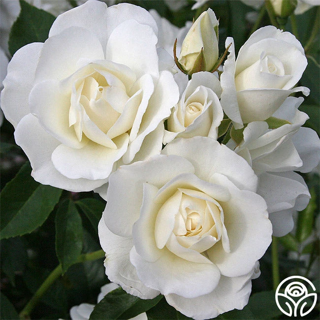 We have listed Iceberg as a Shrub rose because we feel it fits here better than the Floribunda class. Iceberg is one of the finest roses ever developed with large, semi-double, 3” blooms with 10-12 petals. Her pure white flowers are borne in absolute abandon on a strong-growing bush with shiny mid-green foliage.