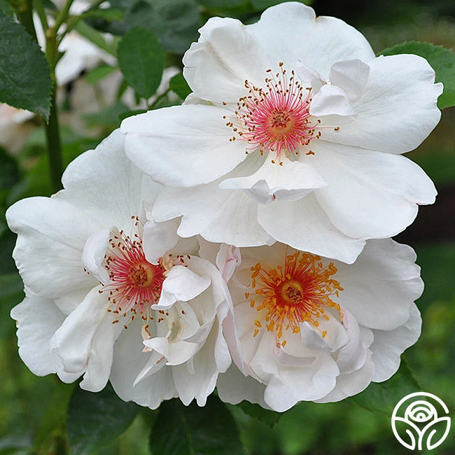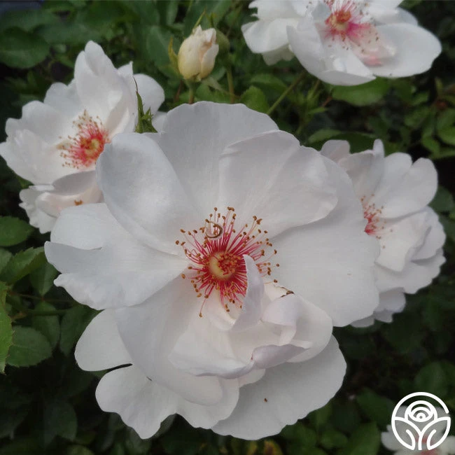 EASY TO GROW! Jacqueline du Pré is a Harkness Shrub rose named for a concert cellist who died very young. Her clusters of charming, semi-double, milk-white 3” blooms have 15+ petals that open to show their rich wine-colored center. Jacqueline du Pré is blessed with wonderful musk perfume. She is a very easy to grow, upright, continual blooming plant that will flourish even under poor conditions.