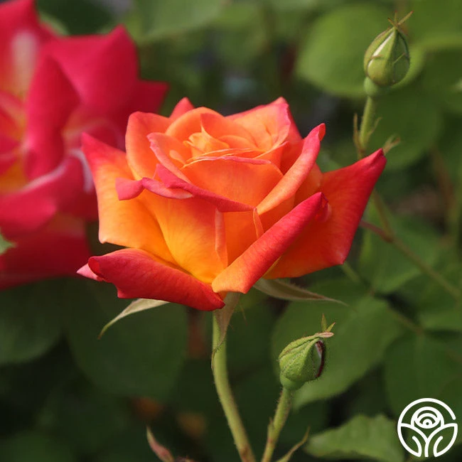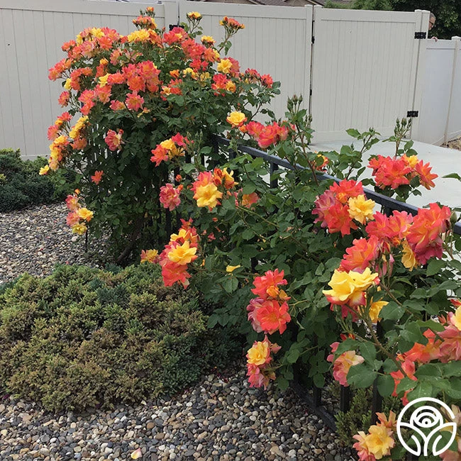 TOP SELLER! This Climber makes a great addition to a cutting garden, and it can be grown as a large climber or as a shrub. Joseph’s Coat produces medium sized, semi-double, 4″ blooms with 12+ petals of cherry-red, deep gold, and orange. He is an upright, hardy, continually blooming plant with dark-green, glossy foliage. Brighten up your garden with the many colors of Joseph’s Coat, and you’ll soon see why he is a top seller!