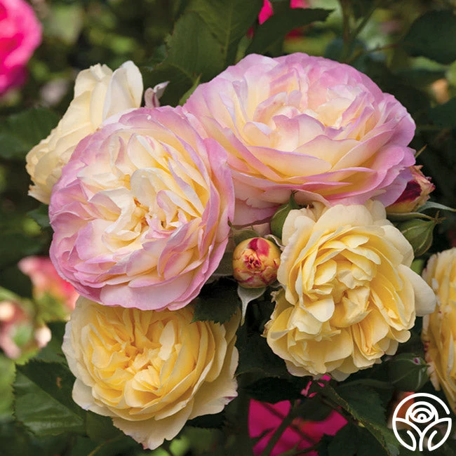 This lovely lady is ready to be the center of attention. Her blooms have a powerful fragrance of fruit and citrus coming from her old-fashioned, 3- 3½” blooms of soft yellow that finish with a kiss of pink on the petal edges. Life of the Party has a well-behaved growing habit and dark green, glossy leaves that give her plenty of energy to generate a nearly endless supply of blooms. This impressive rose thrives in hot, dry climates and has good disease resistance.