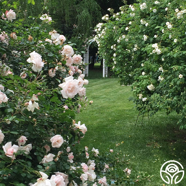 In 1997 ‘New Dawn’ was voted the most popular rose in the world at the 11th World Convention of Rose Societies, and she deserves it. She produces silvery, blush-pink, 3″ double flowers with 15+ petals on a great, repeat blooming plant. New Dawn is versatile enough to be grown as a Shrub or a Climber. She is a prolific repeat bloomer with a delightful, strong fragrance. New Dawn can tolerate colder temps down to zone 4 and also doesn’t mind dappled shade. A win all around!