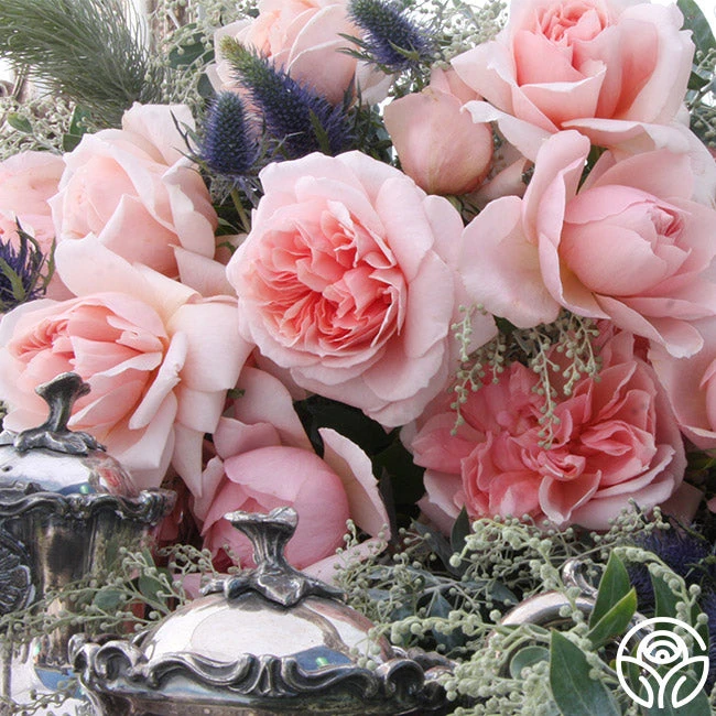 Relais & Chateaux, named for a luxury hotel chain, has frilly but firm petals forming her classic, cup-shaped blooms. Shades of cream flow into a delicate splash of pink followed by soft, peachy warmth. With a sweet, fresh rose perfume this rose is romantic as can be. This moderately fragrant rose makes an excellent hedge for the cutting garden.