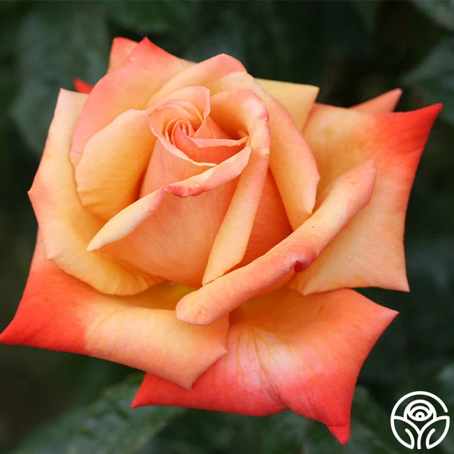 How could we possibly forget Remember Me with her bronzed beige and burnt orange, 5″ blooms that age to a beautiful orange-red? She is nearly perfect with her 35+ porcelain petals per bloom on a continually blooming bush. Remember Me features a fruity scent that is remarkable but not overpowering. A perfect rose to pair with other brightly colored roses like Flaming Peace, Las Vegas, or Crazy Love.