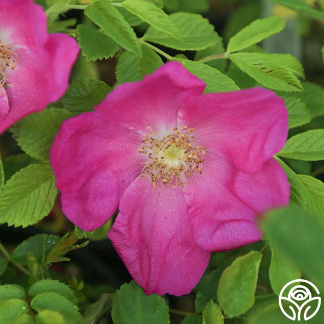The simple structure and pink velvet color of these blooms are amazing. Scabrosa is a moderately fragrant hybrid Rugosa with single or semi-double flowers blooming throughout the summer. She is a robust, medium-sized shrub with glossy, strongly-veined leaves. Truly a hardy rose as Scabrosa thrives all the way down to zone 3 with ease, strong disease resistance, and drought-tolerance.
