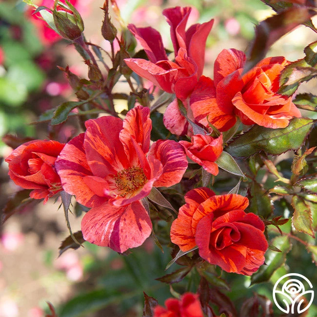 At first glance you may wonder if this is really a rose! Tawny Tiger is so different with her rich, dark orange, semi-double 4” flowers striped with terracotta and brown for a dramatic effect. She rewards with a profusion of blooms on a continual blooming bush. Keep her front and center for maximum impact.