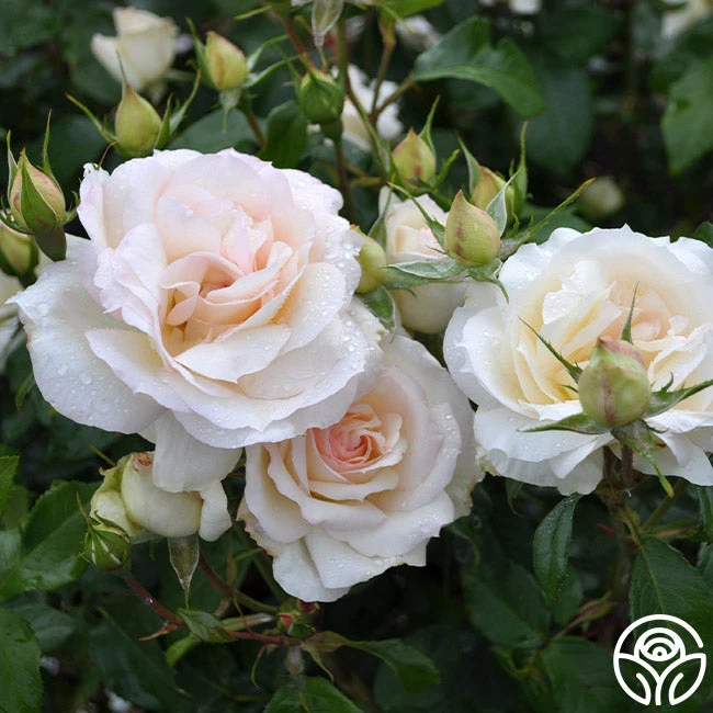 A rose named after the Russian composer, Tchaikovsky, this plant produces large, very full,old-fashioned, 4” rosette blooms in clusters. His creamy white flowers have a buttery yellow center which look beautiful against the dense medium, semi-glossy, dark green foliage. He is a vigorous and bushy plant that blooms continuously and offers excellent disease resistance.