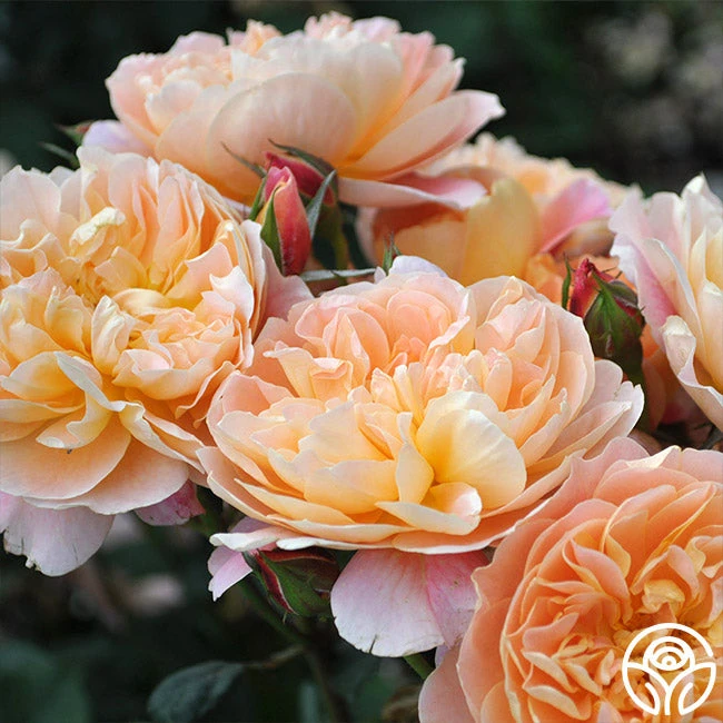 MUST HAVE! Bred right here at Heirloom Roses, The Impressionist is a stunning apricot blended rose with fully double, 4″ blooms of 100+ petals. Depending on the age of the bloom, expect to see a wide range of colors such as apricot, salmon, creamy pink, peach, coral, orange red, and gold. This Climber will train well on a trellis or fence topping out around 9-11’ tall and is perfect for a cut flower garden. We love her myrrh/old garden rose fragrance and unique, dark blue-green foliage. Check out all of The Impressionist’s amazing five star reviews and you’ll see why she easily wins Best in Show over and over again.