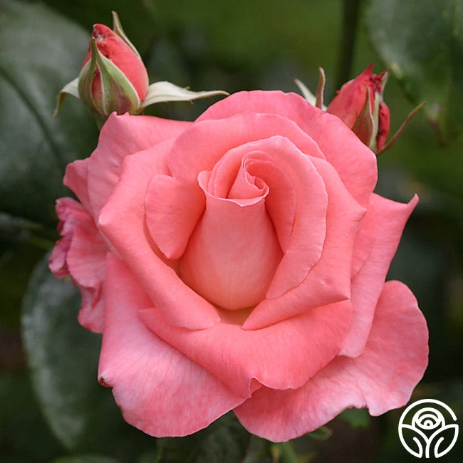 Touch of Class easily lives up to her rating by the American Rose Society as the finest Hybrid Tea rose in the world. Her pointed buds open slowly and spiral into one of the most beautiful, well-formed, and intricate of all roses. With a gentle blend of pink, orange, and cream and a hint of coral pink with cream highlights, Touch of Class’ 5 1/2″ blooms with a petal count of 30+ rest atop long cutting stems. She is a vigorous, continual blooming bush with mahogany new foliage maturing to deep green. An All-American Award Winner, an excellent cut rose, and a color to die for – Touch of Class really is a class above the rest of the Hybrid Teas.