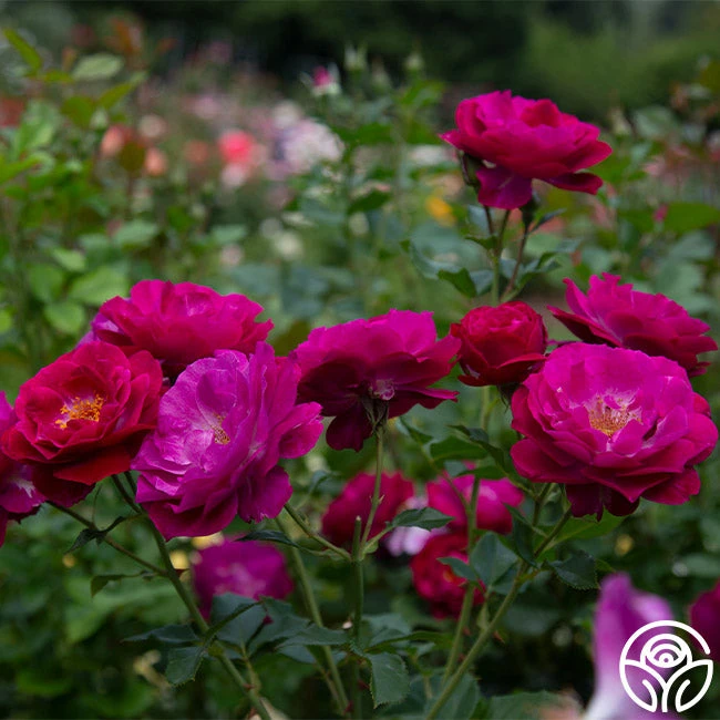 Wild Blue Yonder is a unique Grandiflora with camellia-like, ruby-red and purple blossoms with lavender eyes. Wild Blue Yonder is gorgeous with its lush citrus blossom and rose fragrance. This is an AARS award winner that gets better with age and its deep green leaves pop against the 4” blooms. We love Wild Blue Yonder in beds, borders, or pots as he thrives in every garden!