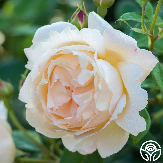 Named for one of the most beautiful British gardens, Wollerton Old Hall is just a dream! She is one of the most fragrant of all English Roses. Her strong, warm, and intensely floral fragrance is in the myrrh family with gentle hints of apricot. The plump buds, with attractive flashes of red, open to form beautifully rounded, chalice-shaped blooms of soft apricot gently aging to a subtle cream. She forms a particularly healthy, upright, bushy shrub with few thorns. She routinely receives 5-star reviews and is highly coveted. We recommend planting this rose where her strong scent can be easily appreciated.